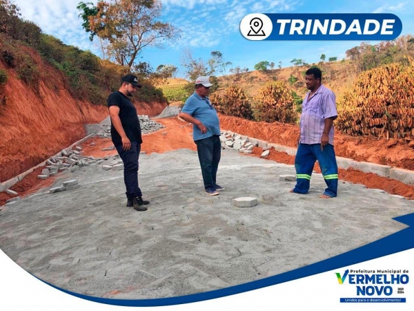 Outra região que vive um canteiro de obras é a região que liga o município a Santa Bárbara do Leste. Com recursos próprios a prefeitura de Vermelho Novo está realizando o calçamento do morro do Osias visando resolver de forma definitiva os problemas que assolam as comunidades da região há muitos anos. A administração tem feito uma análise de todas as demandas e de forma rápida e eficaz um cronograma é estabelecido e executado.